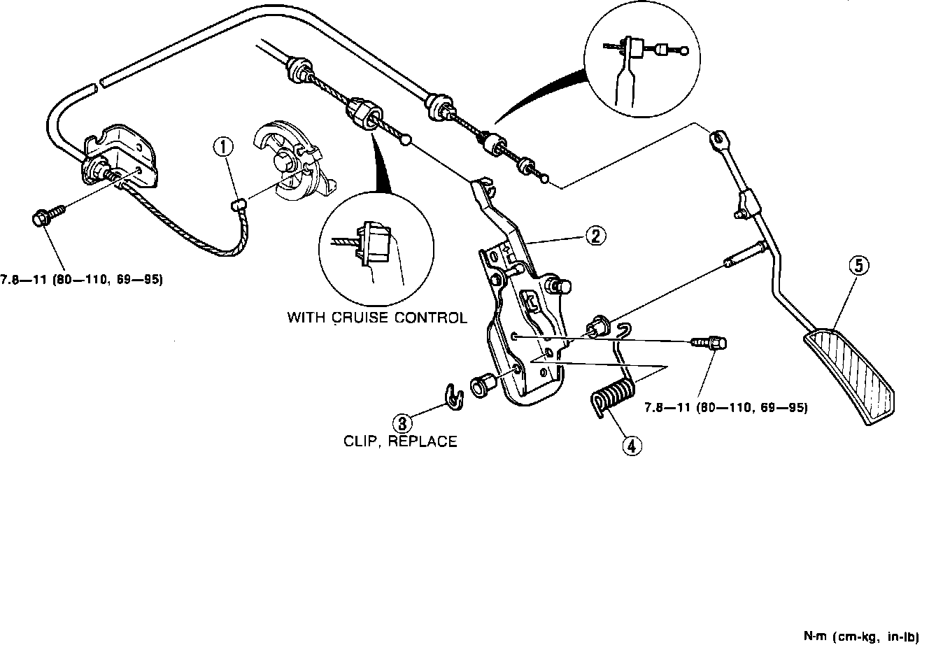 ^ Adjust accelerator cable play after replacement. Refer to Adjustments.
