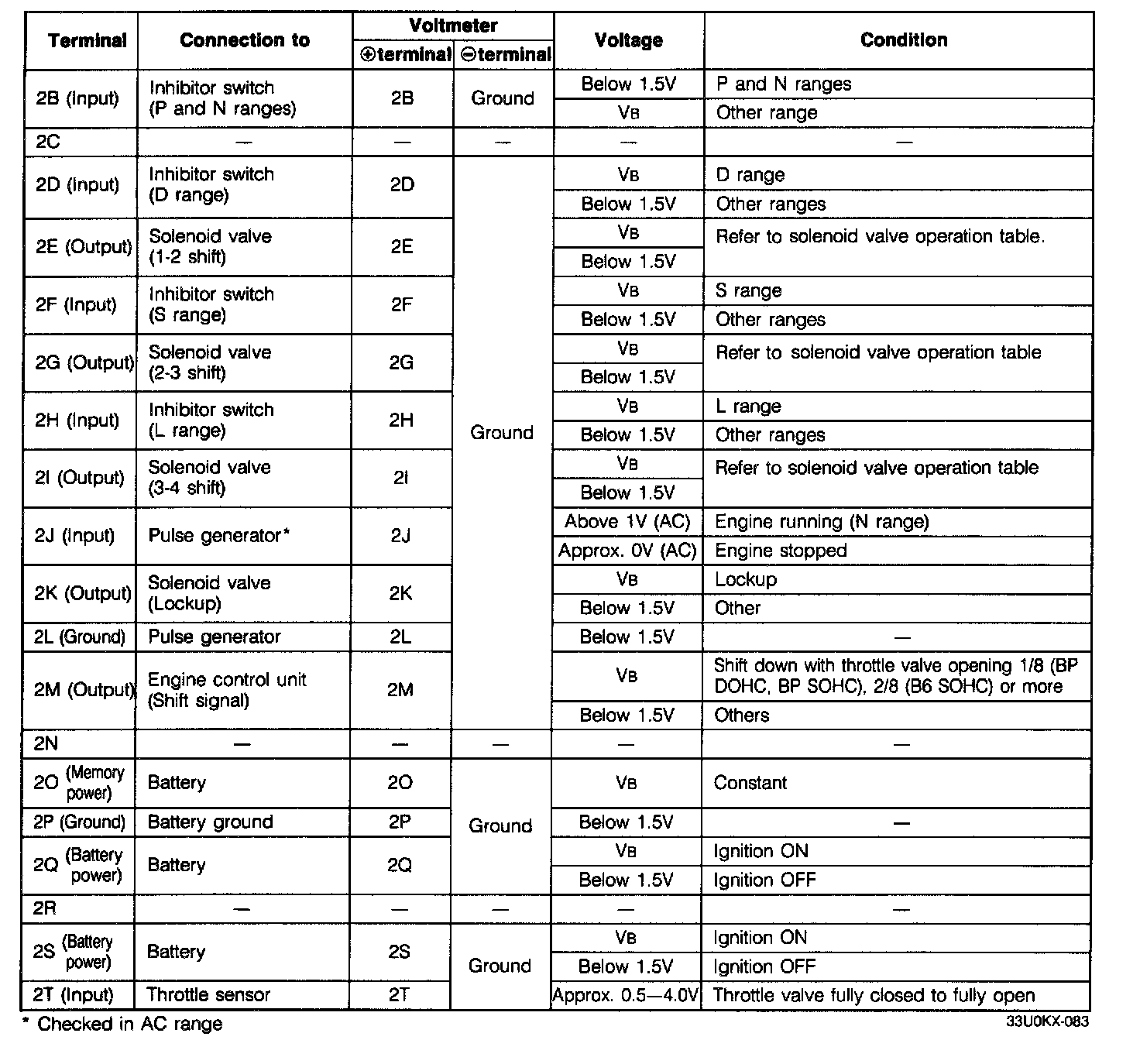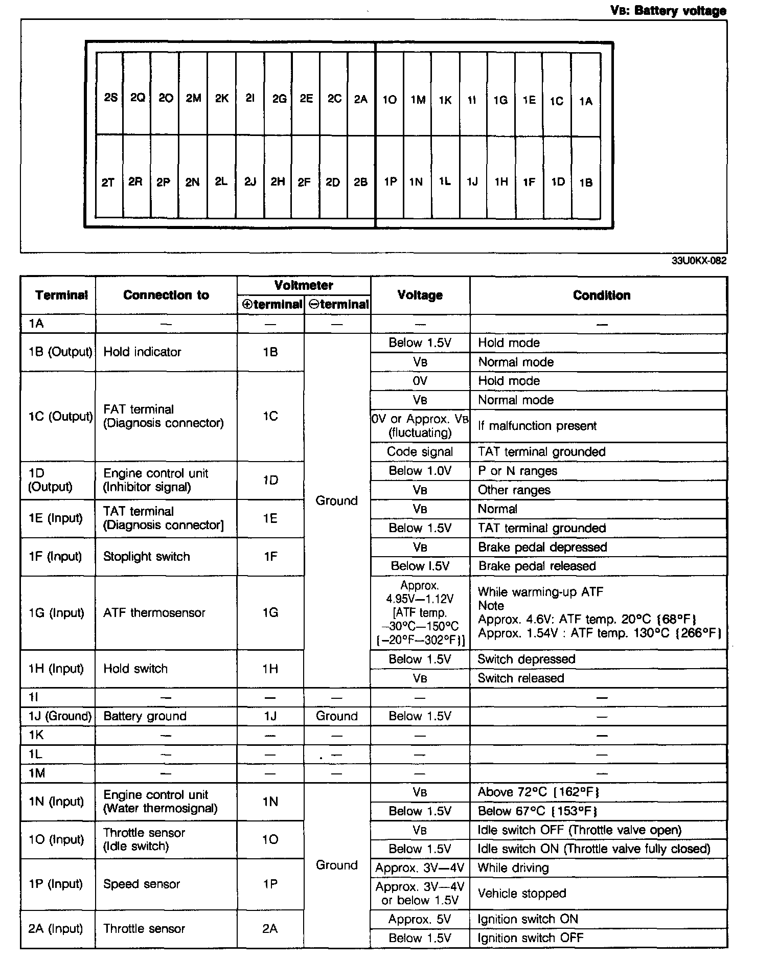 5. If any EC-AT control unit terminal voltage is incorrect, check the related input or output devices and wiring. If no problem is found, replace the EC-AT control unit.