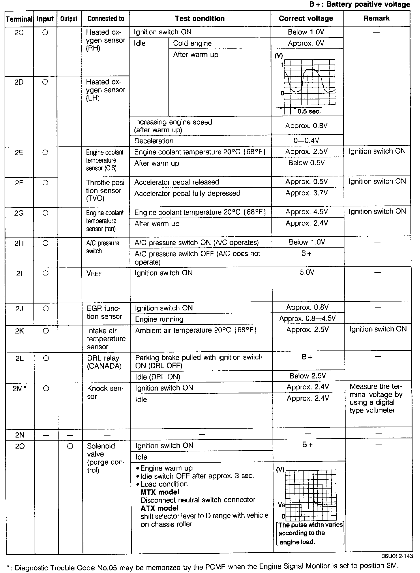 Pinout Values and Diagnostic Parameters