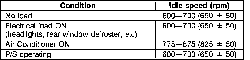 NOTE: Check idle speed with coolant fan not operating.