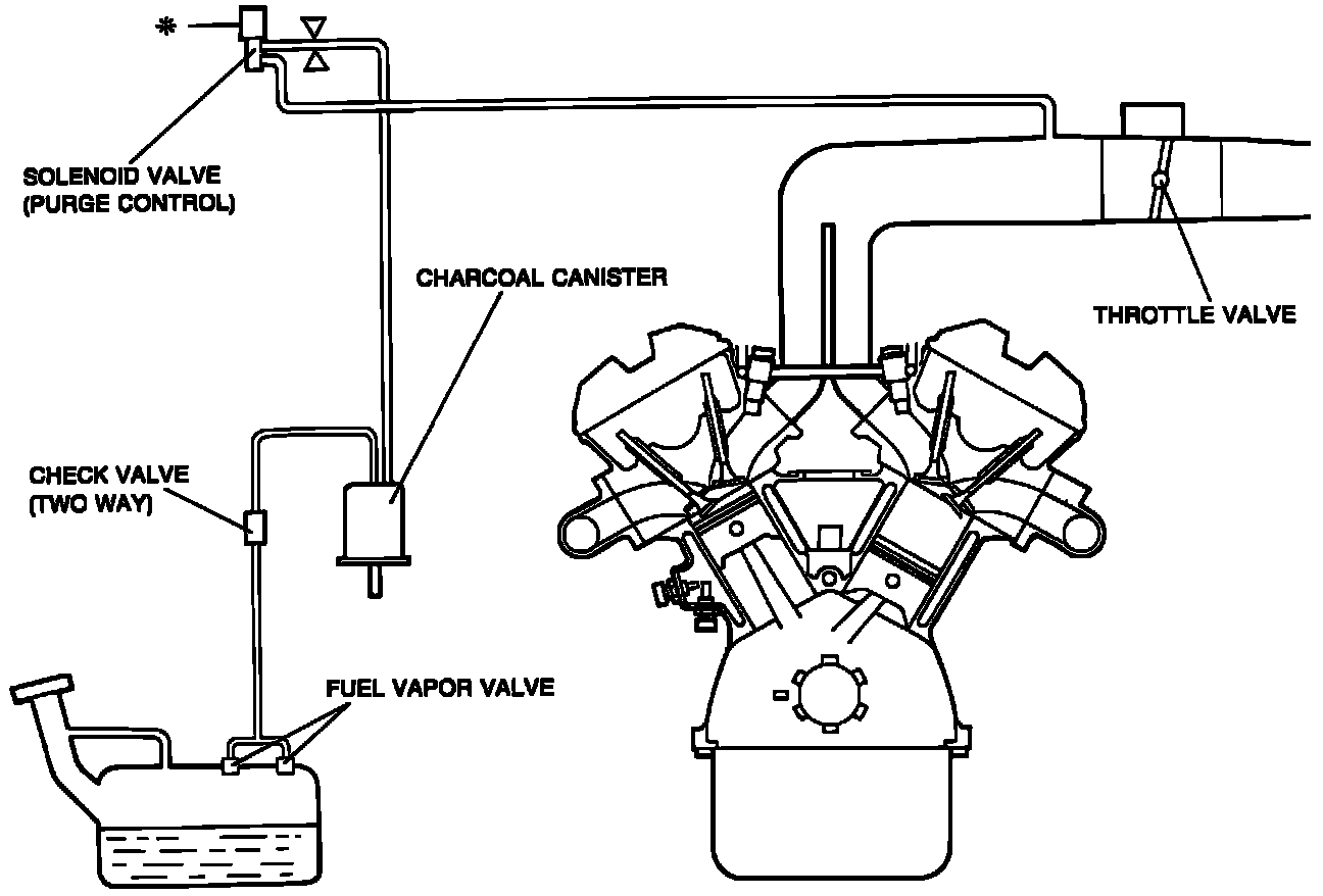 Prevent evaporative fuel vapors from entering the atmosphere. System consists of a fuel vapor valve, two-way check valve, charcoal canister, purge control solenoid valve, PCME, and input devices.