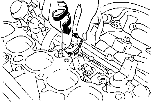 ^ Install injectors into fuel distributor bores by turning injectors. Be careful to prevent O-ring damage.