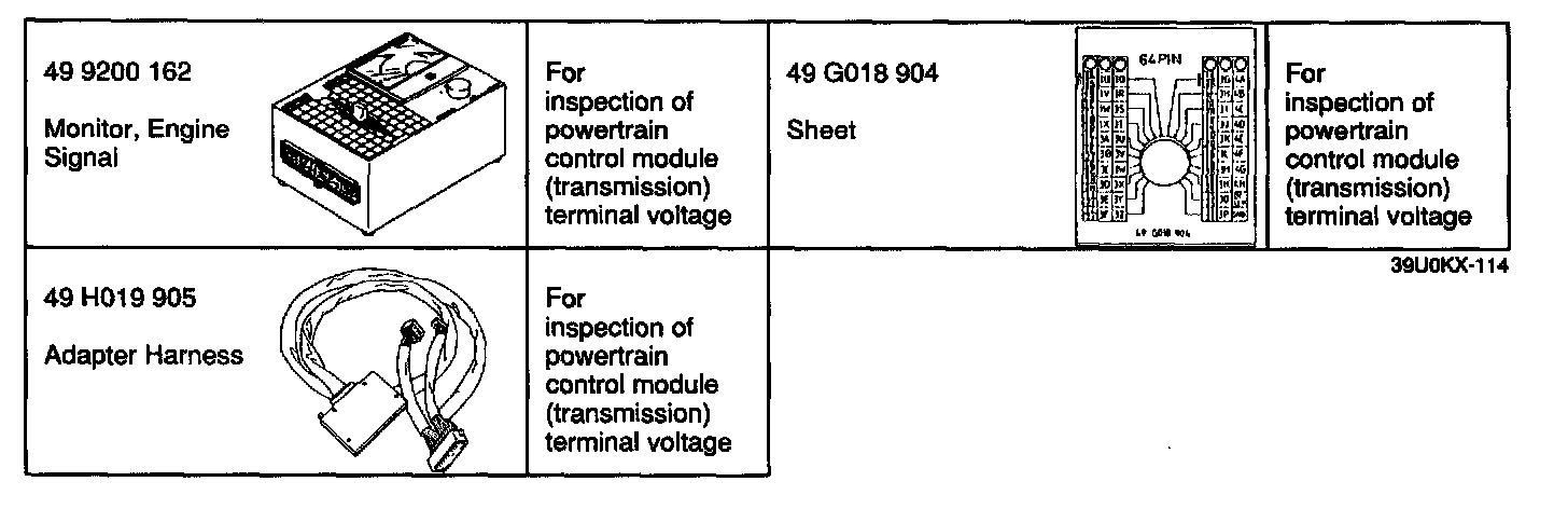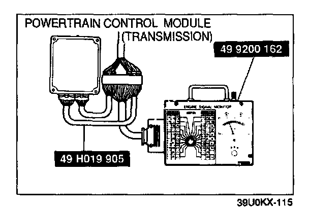 3. Connect the SSTs (Engine Signal Monitor and Adapter Harness) to the powertrain control module (transmission) as shown.