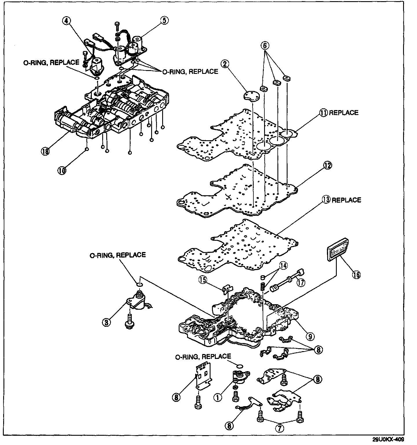 7. Remove the solenoids from the upper valve body.