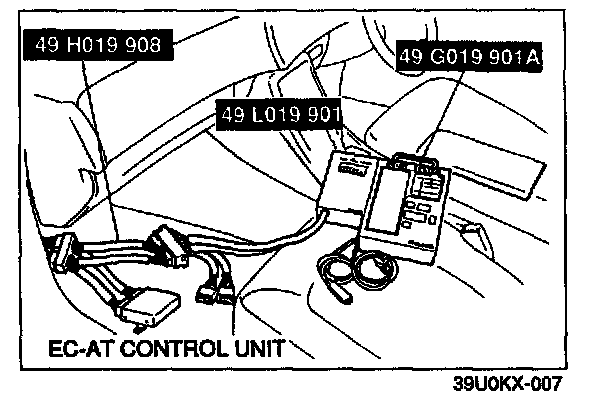 Check for service code(s) memorized in the powertrain control module (transmission) by using the EC-AT Tester or Self-Diagnosis Checker. On-Board Diagnostics