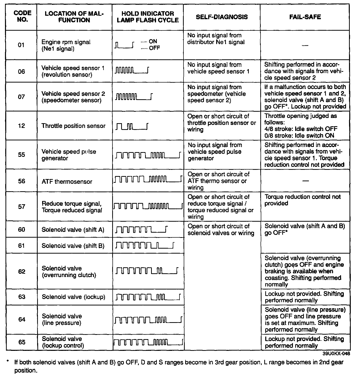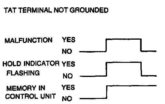 2. The hold indicator flashes to indicate the same pattern as the buzzer of the Self-Diagnosis Checker or the EC-AT Tester. When the TAT terminal of the data link connector is not grounded, the indicator flashes at a constant frequency until the malfunction recovers. However, the service code is memorized in the powertrain control module (transmission).