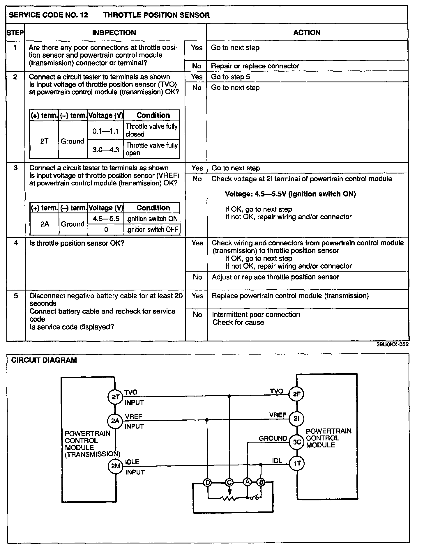 3. The powertrain control module (transmission) has a built-in fail-safe function for the throttle position sensor, the vehicle speed sensors, and all the solenoids. If a malfunction occurs, the powertrain control module (transmission) will control operation of the remaining components according to a preset fail-safe program.