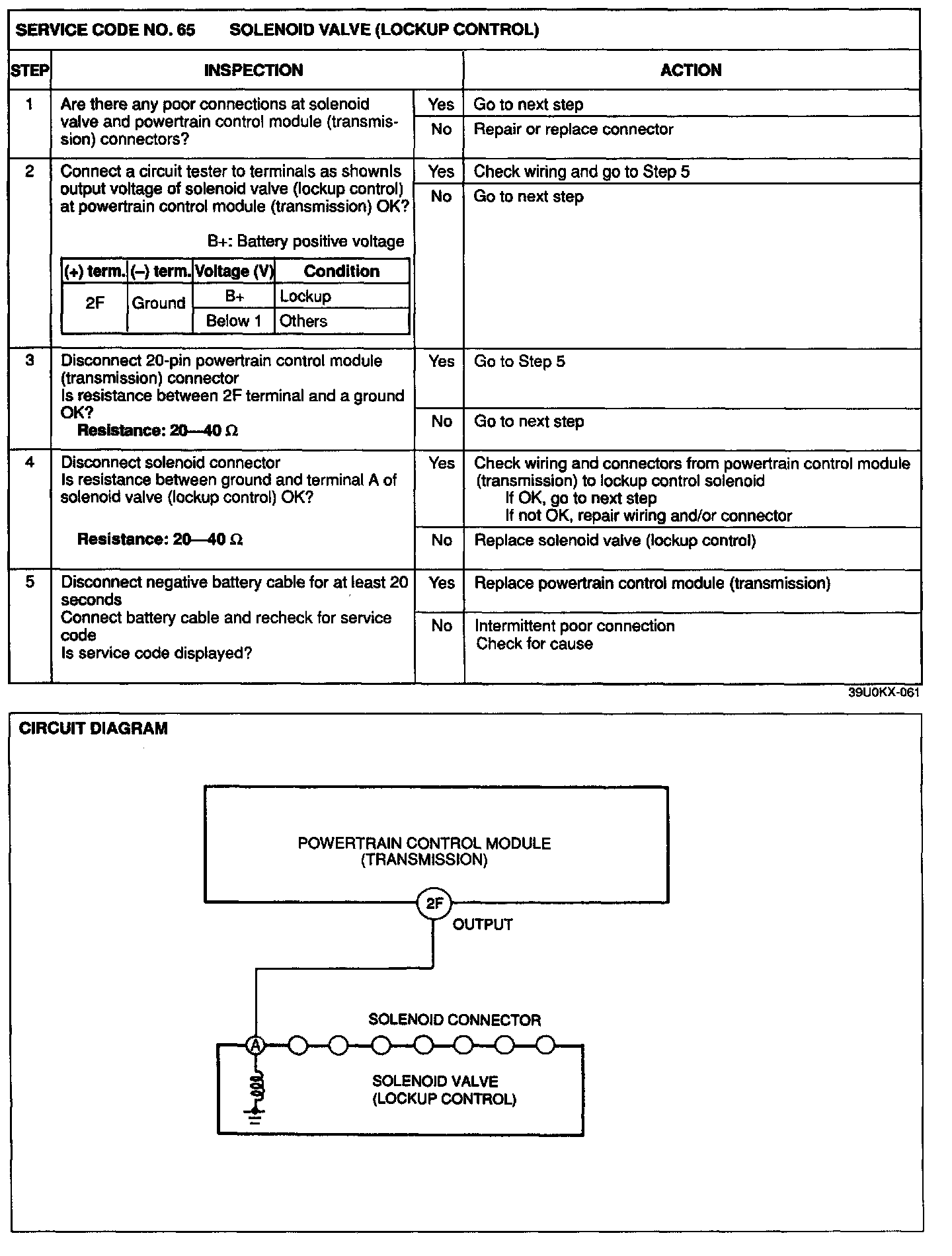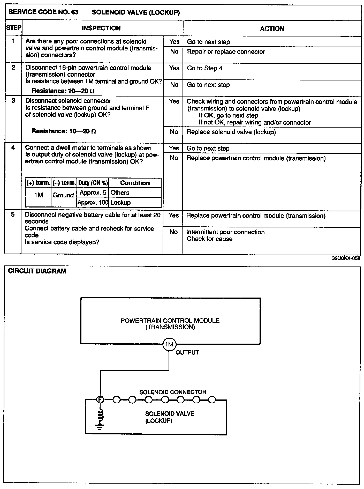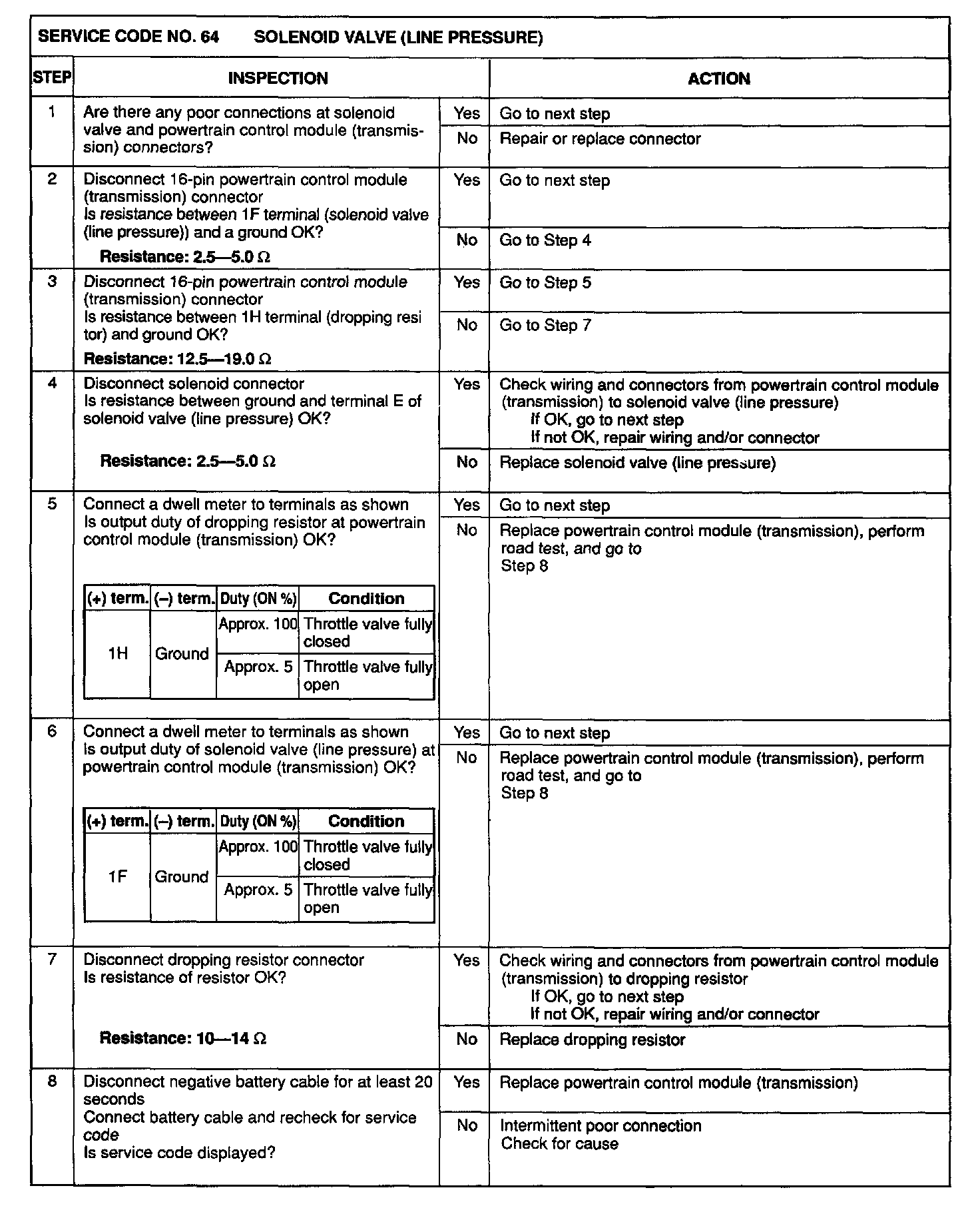 4. Any service codes in the powertrain control module (transmission) memory are canceled when the negative battery cable is disconnected for at least 20 seconds.
