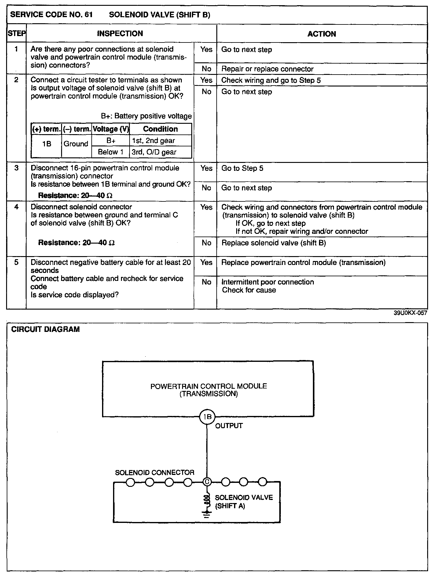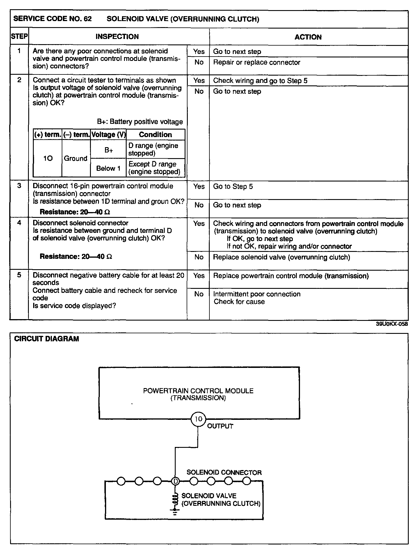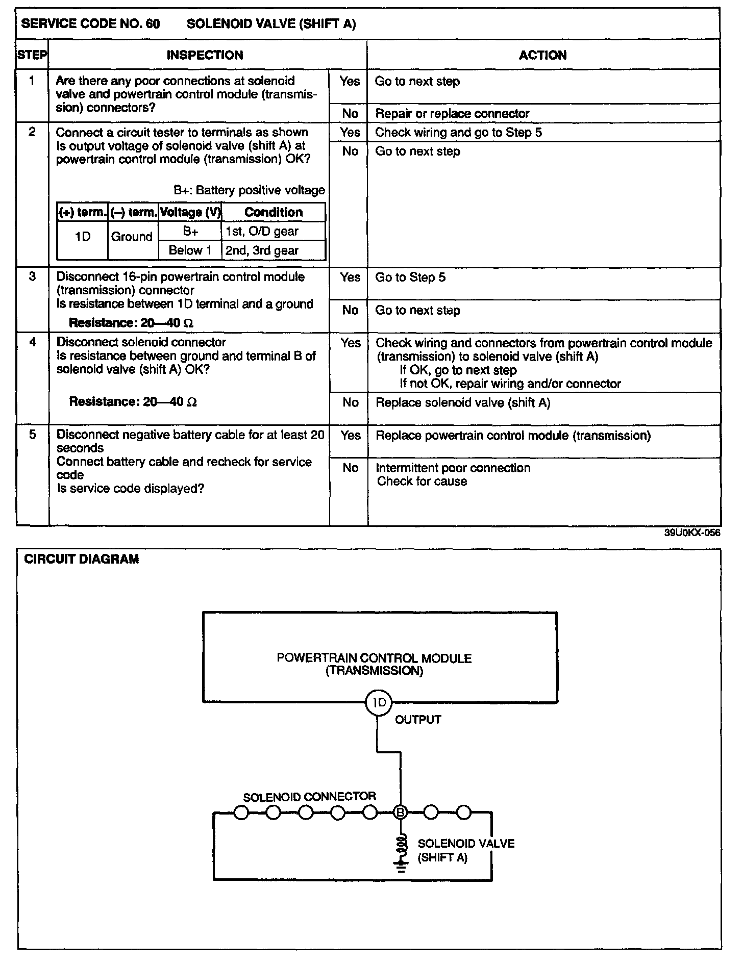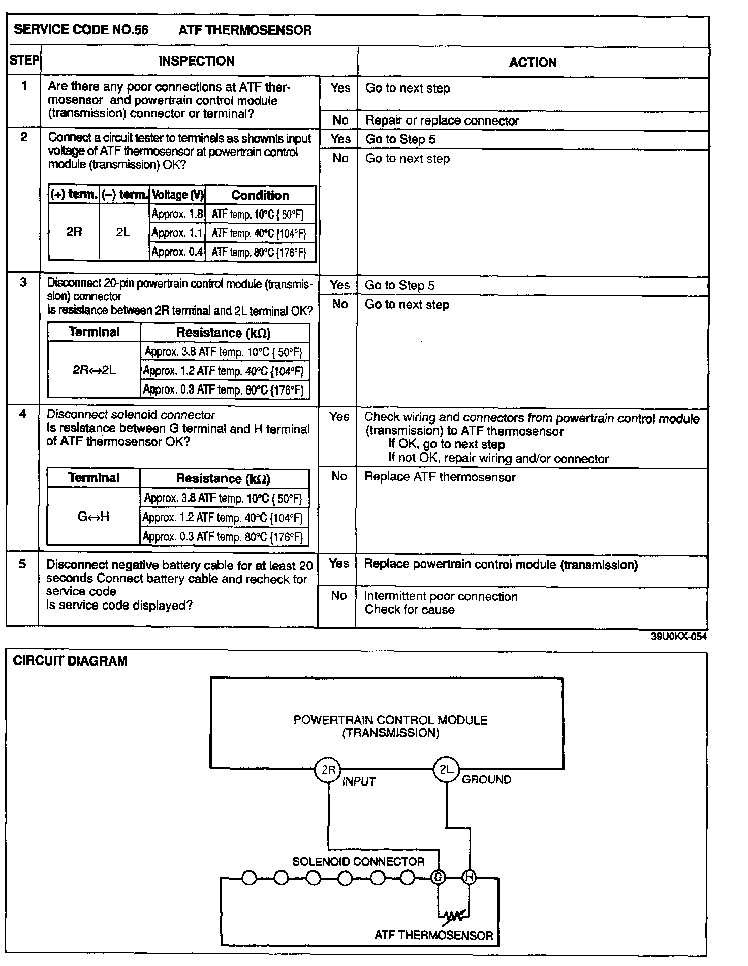 4. Any service codes in the powertrain control module (transmission) memory are canceled when the negative battery cable is disconnected for at least 20 seconds.