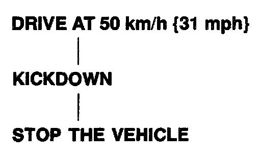 3. Drive the vehicle at 50 kph (31 mph), and depress the accelerator pedal fully to activate kickdown. Stop the vehicle gradually.