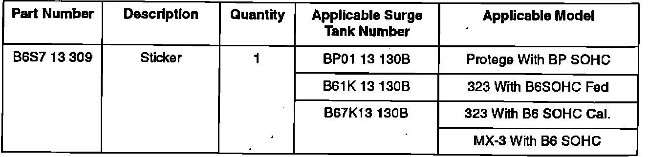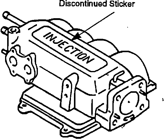 The "INJECTION" sticker attached to the top of the surge tank has been discontinued from vehicles in production and from surge tanks available as service replacement parts. If replacement of the surge tank is necessary, the sticker is available separately.