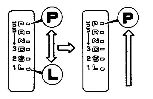 3. While depressing the brake pedal, shift the selector lever to each range (P-L) and leave it a few seconds in each range.