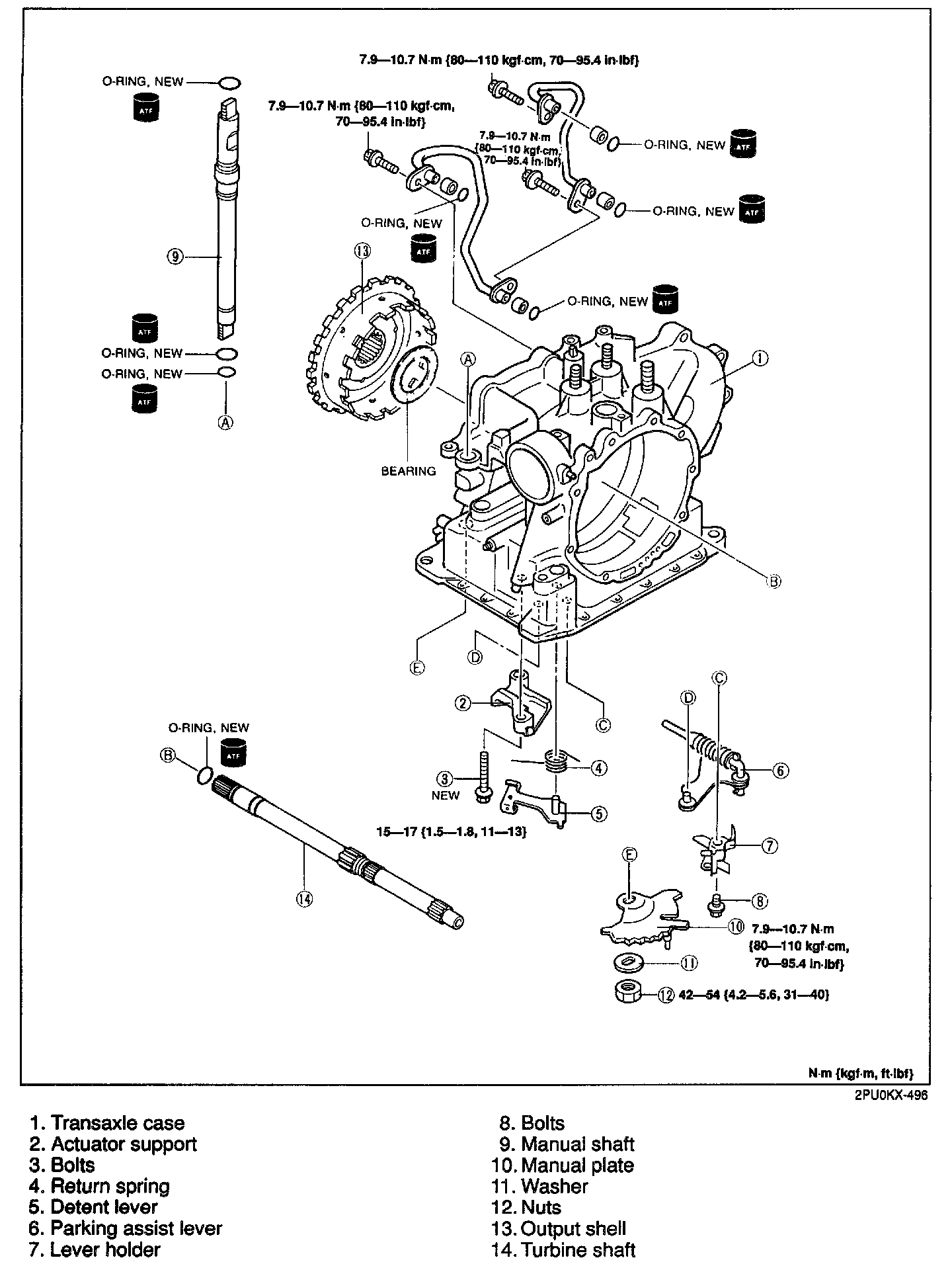 2. Before assembly, apply ATF to all seal rings, rotating parts, O-rings, and sliding parts.