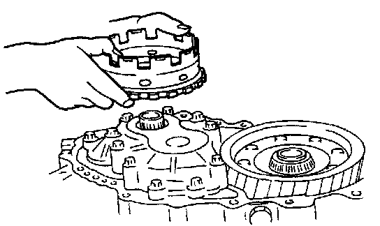 3. Install the carrier hub assembly into the 3-4 clutch drum by rotating it.