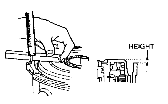 NOTE: Measure the height difference between the reverse and forward drum and the transaxle case.