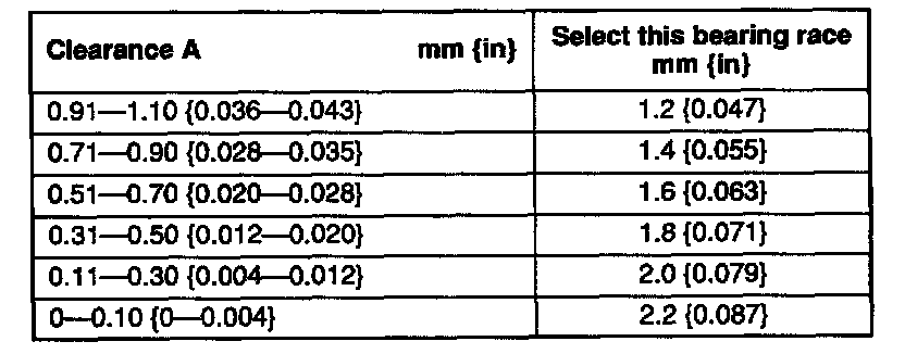 6. Select a suitable bearing race from the chart below.