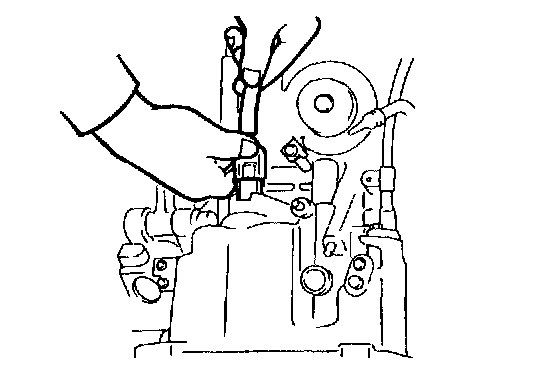 34. Install a new O-ring on the bracket; then feed the throttle cable through the transaxle case and connect it to the throttle lever.