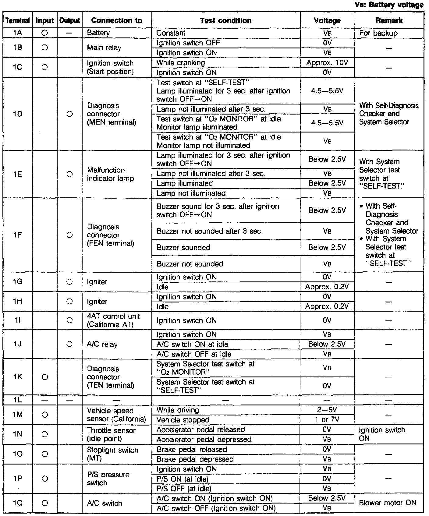 ECU Pin Voltage Chart (Part 2):