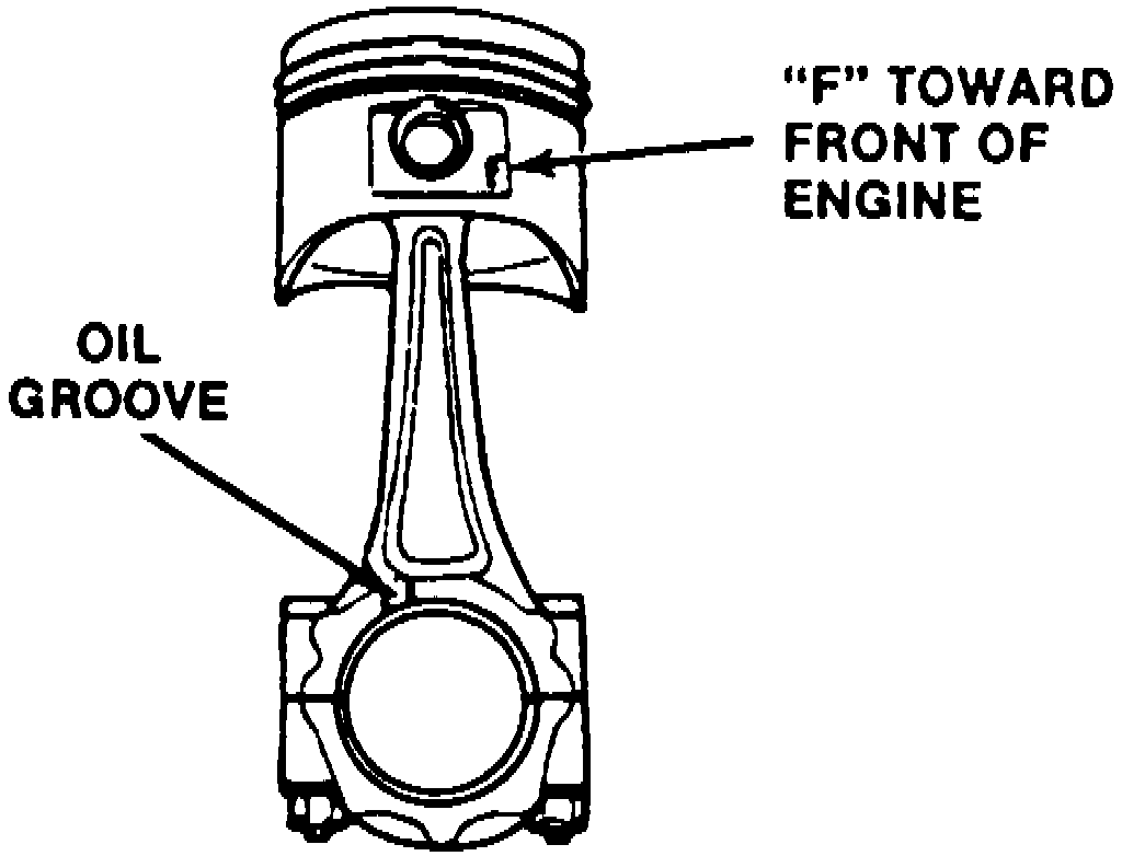 and rod with stamped "F" toward front of engine,