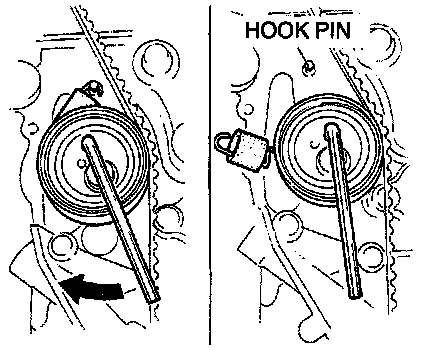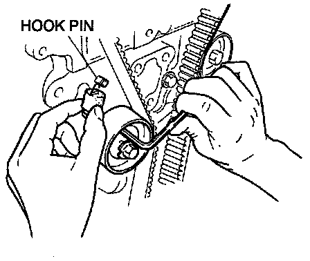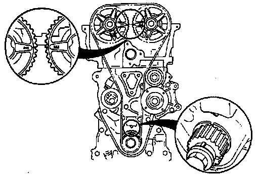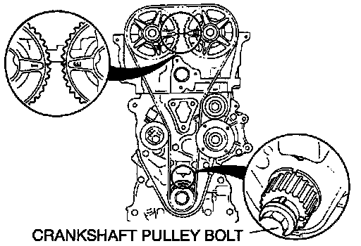 5. Turn the crankshaft clockwise twice, and align the timing marks. If they are not aligned, remove the timing belt and repeat from Timing Belt Assembly Note step 1.