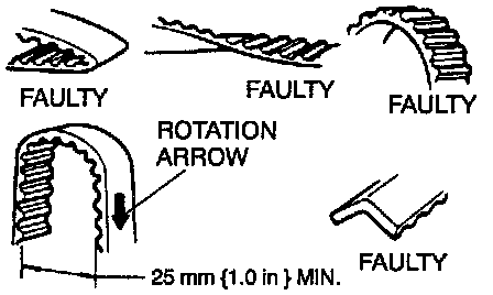CAUTION: The following will damage the belt and shorten its life; forcefully twisting it, turning it inside out, or allowing oil or grease on it.
