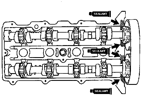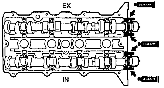 1. Apply silicone sealant to the shaded areas of the cylinder head as shown.