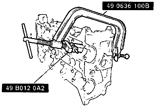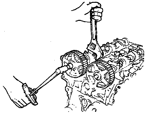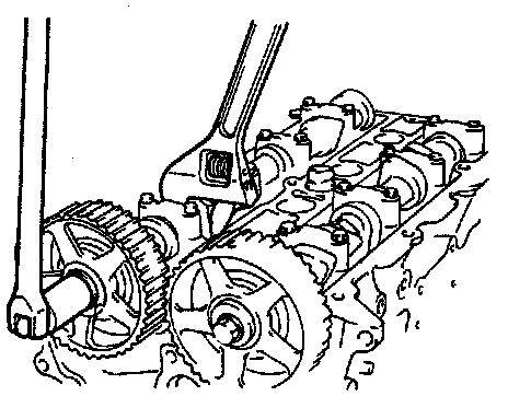- Hold the camshaft by using a suitable wrench on the cast hexagon as shown.