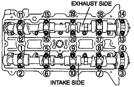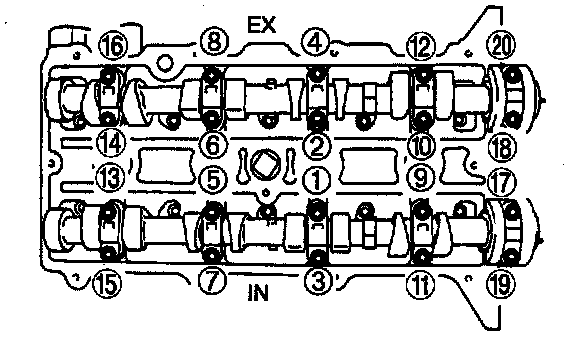 2. Loosen the camshaft cap bolts in two or three steps in the order shown.