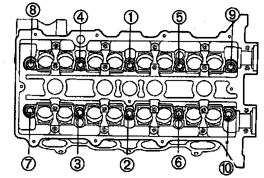 - Loosen the cylinder head bolts in two or three steps in the order shown.