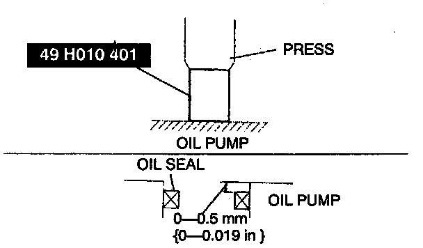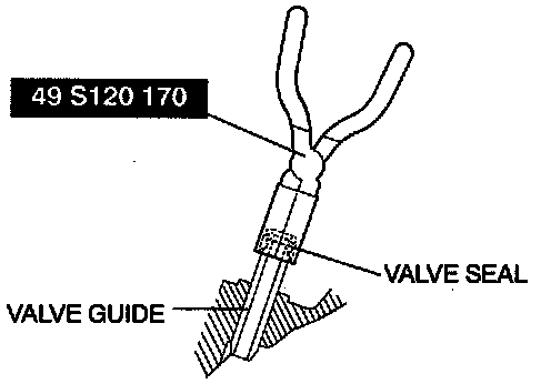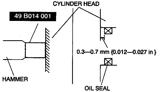 7. Tap the oil seal into the cylinder head by using the SST and a hammer.