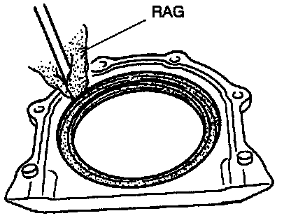 - Remove the rear oil seal by using a screwdriver Protected with a ran.