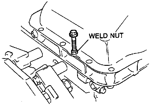 3. Screw an oil pan bolt into the weldnut to make a small gap between the oil pan upper block and the oil pan.