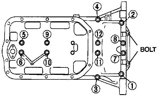 2. Loosen the oil pan upper block bolts in two or three steps in the order shown.