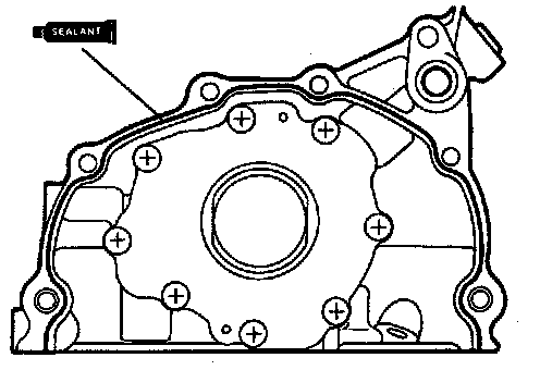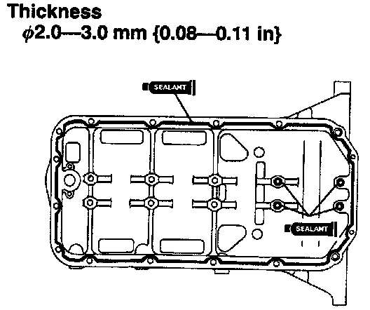 1. Apply silicone sealant to the oil pan upper block as shown.