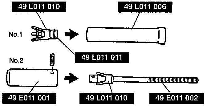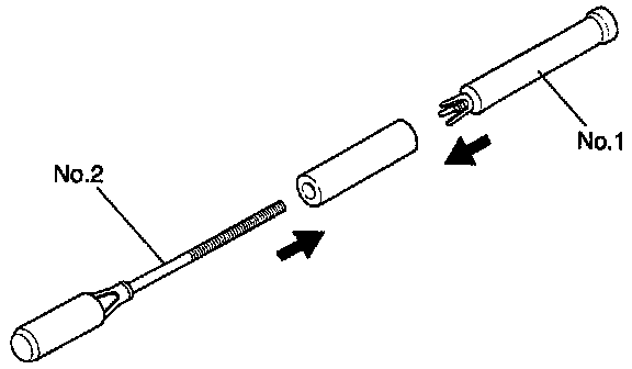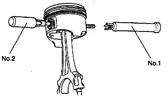 2. Insert SST No.2 into the piston pin as shown and fully screw in SST No.1.