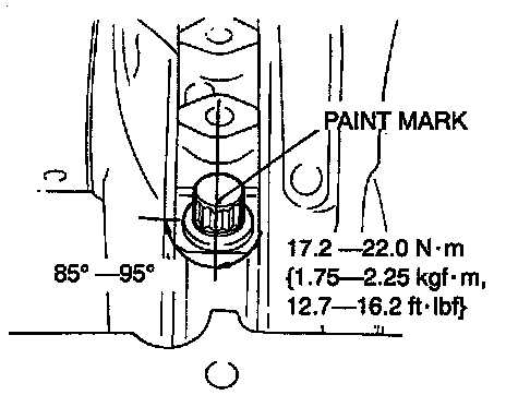 15. Using the mark as a reference, tighten the bolts by turning each 85° - 95°.