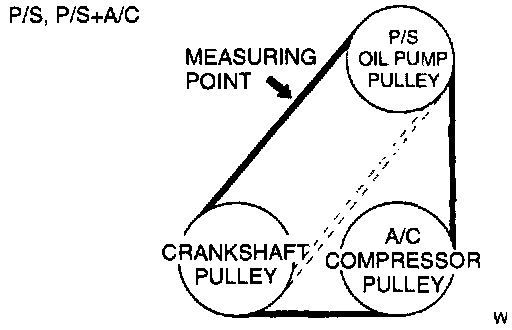 1. Belt tension can be verified in place of belt deflection. Verify the drive belt tension when the engine is cold, or at least 30 minutes after the engine has stopped. Using the SST, verify the belt tension between any two pulleys.