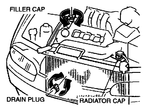 Warning: Removing the radiator cap or the coolant filler cap while the engine is running, or when the engine and radiator are hot is dangerous. Scalding coolant and steam may shoot out and cause serious injury. It may also damage the engine and cooling system.Turn off the engine and wait until it is cool. Even then, be very careful when removing the cap. Wrap a thick cloth around it and slowly turn it counterclockwise to the first stop. Step back while the pressure escapes. When you're sure all the pressure is gone, press down on the cap still using a cloth turn it, and remove it.