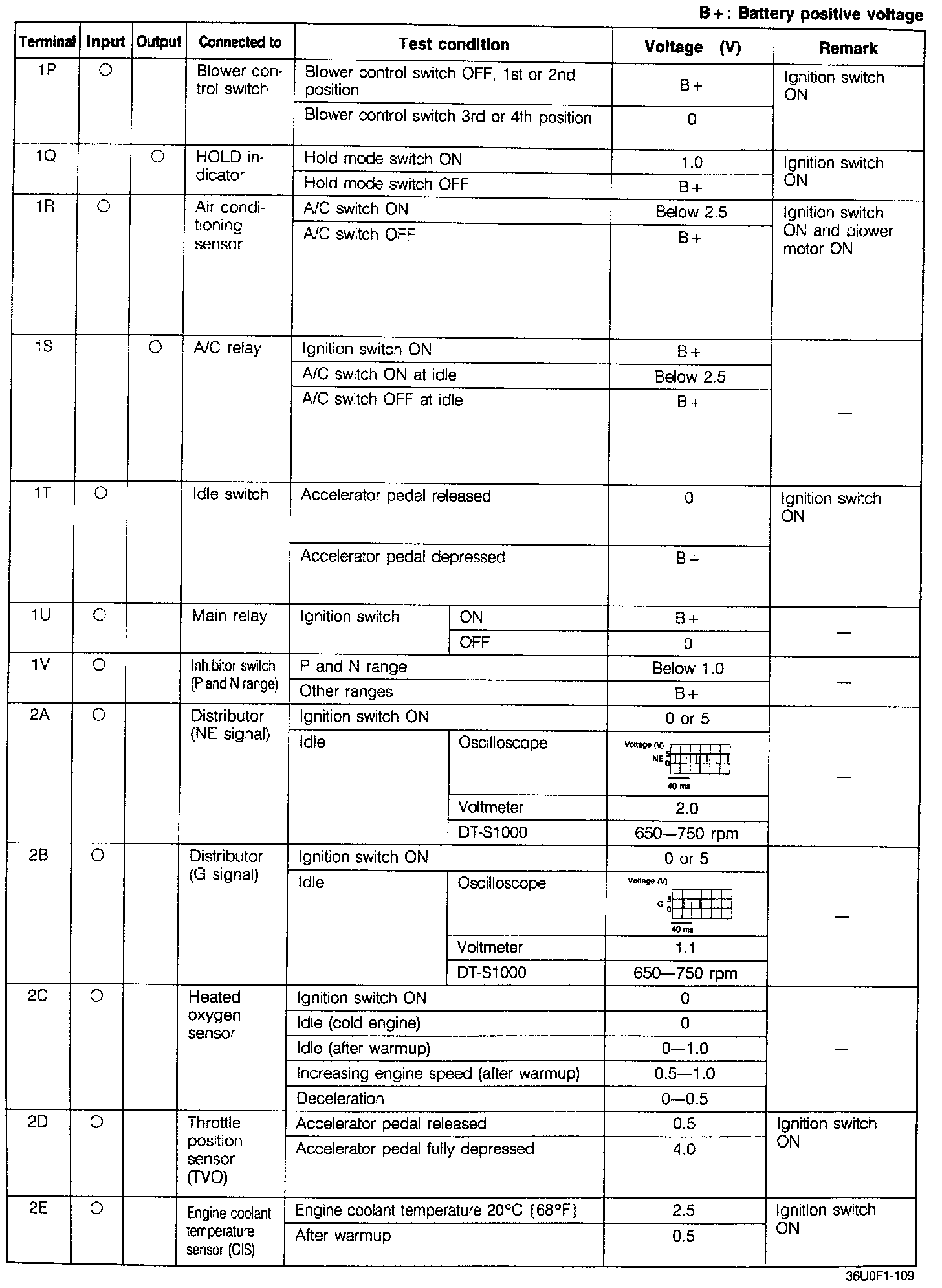 Pinout Values and Diagnostic Parameters