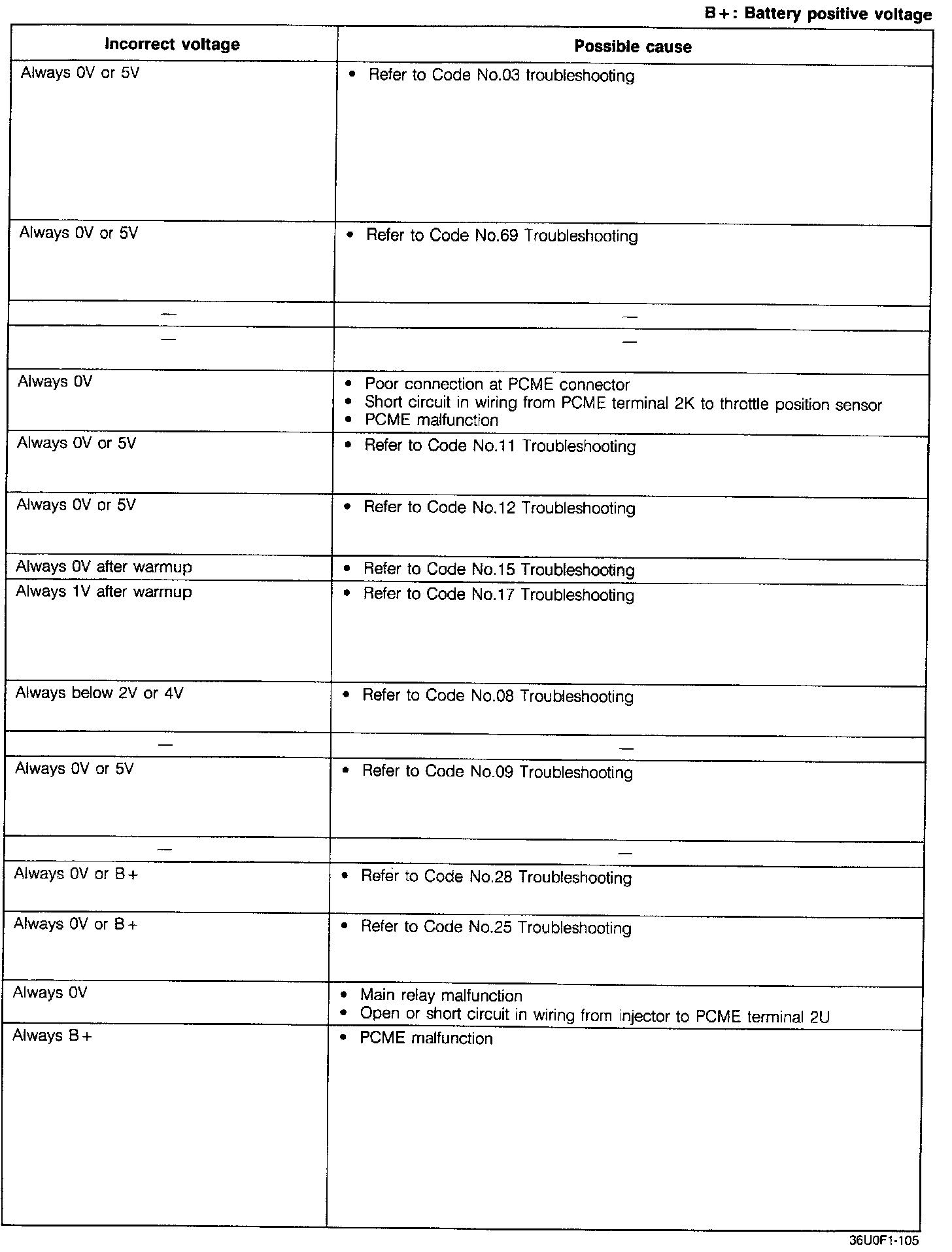 Pinout Values and Diagnostic Parameters