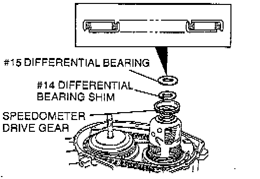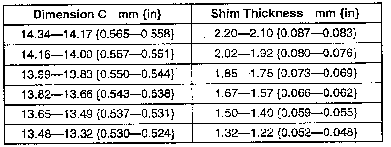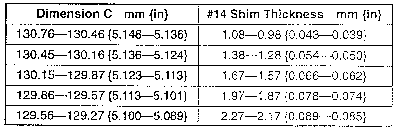 96. Use dimension C to select the proper #14 differential bearing shim from the illustrated chart.
