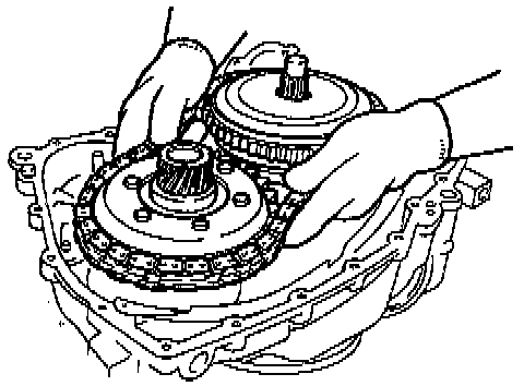 88. Lower the chain drive and its sprockets together in the transaxle case. Verify that both sprockets are seated.