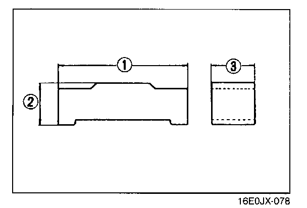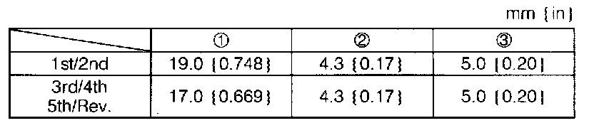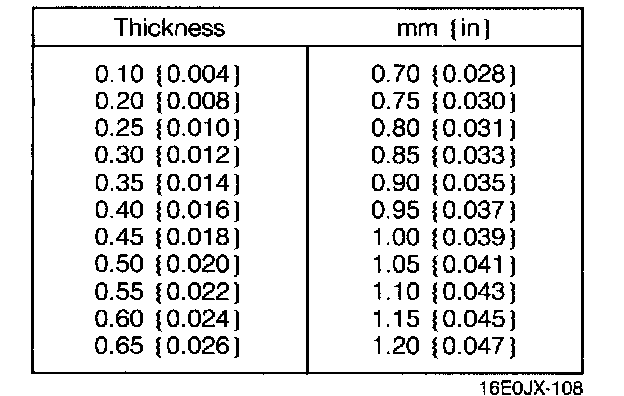 Shim selecting range: 0.57 mm (0.022 in) + 0.03 mm (0.001 in)) - (0.57 mm (0.022 in) + 0.08 mm (0.003 in)) = 0.60 mm (0.024 in) 0.65 mm (0.026 in)