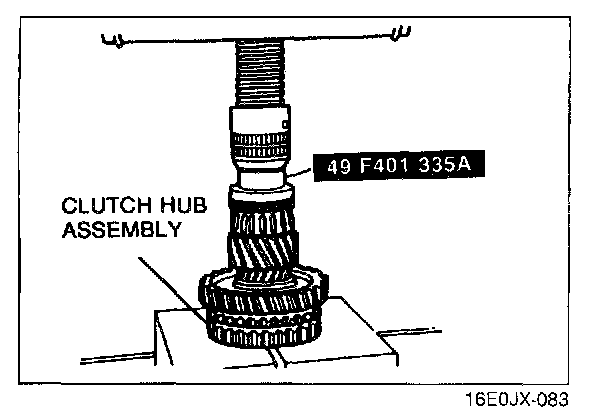 2. Press the clutch hub assembly (1st/2nd) on by using the SST.