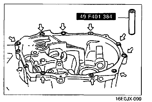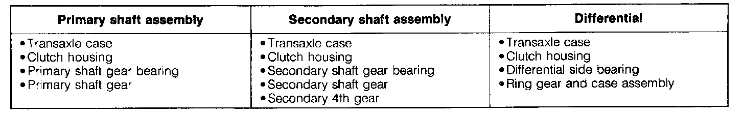3. Assemble parts within 10 minutes after applying sealant. Allow all sealant to cure at least 30 minutes after assembly before tilling the transaxle with transaxle oil.