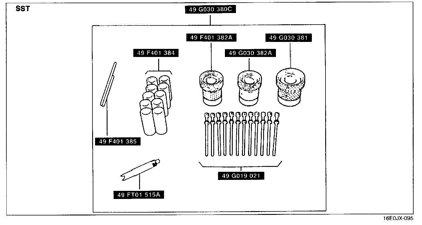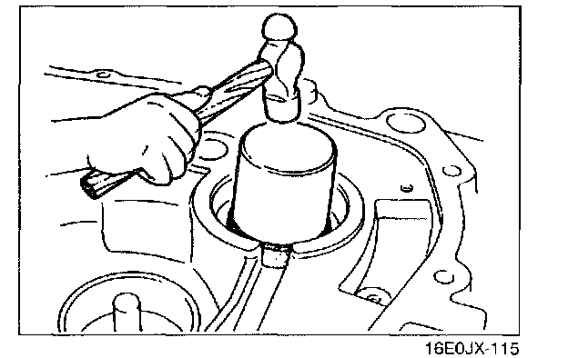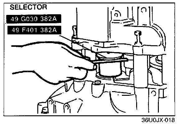 1. Install the synchronizer ring (4th), 4th gear, and a new bearing by using the SSTs.
