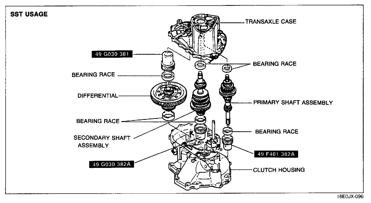 8. Remove the SST, transaxle case, primary shaft gear assembly and differential.