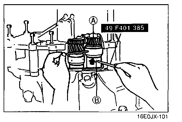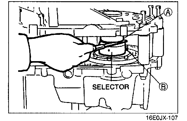 7. To seal the bearings, mount the SST (bars) on parts A and B of the selectors, and turn the selectors so the gaps are widened.