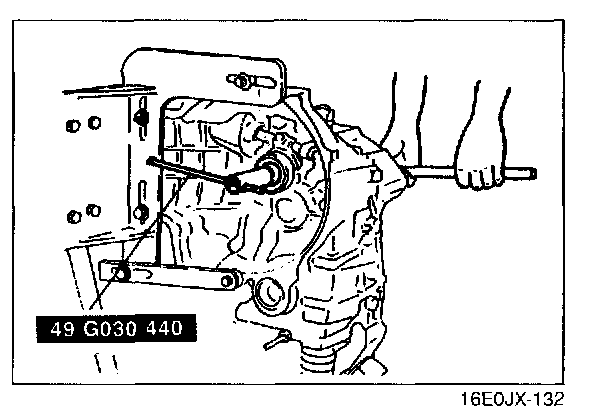 6. With the transaxle facing in the direction shown in the image, install the SST to the primary shaft gear assembly.