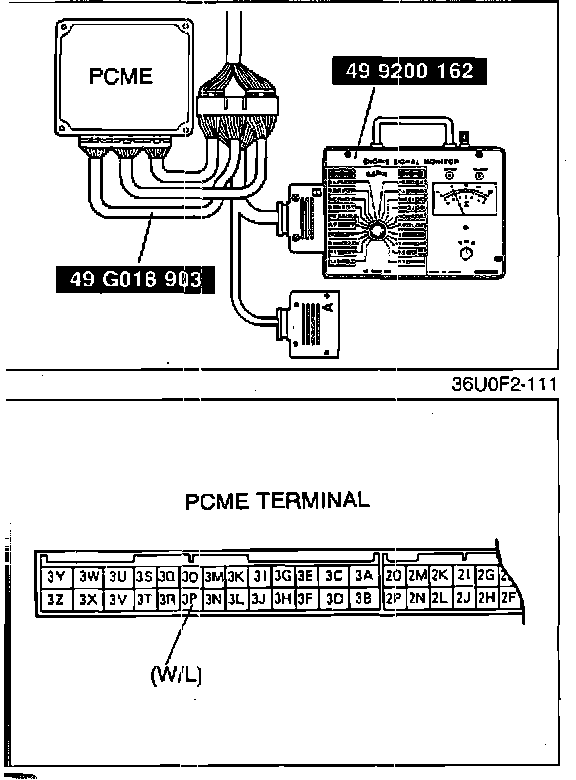 5. Ground PCME terminal 3P (W/L) with jumper wire. Engine should run rough or stall at idle.